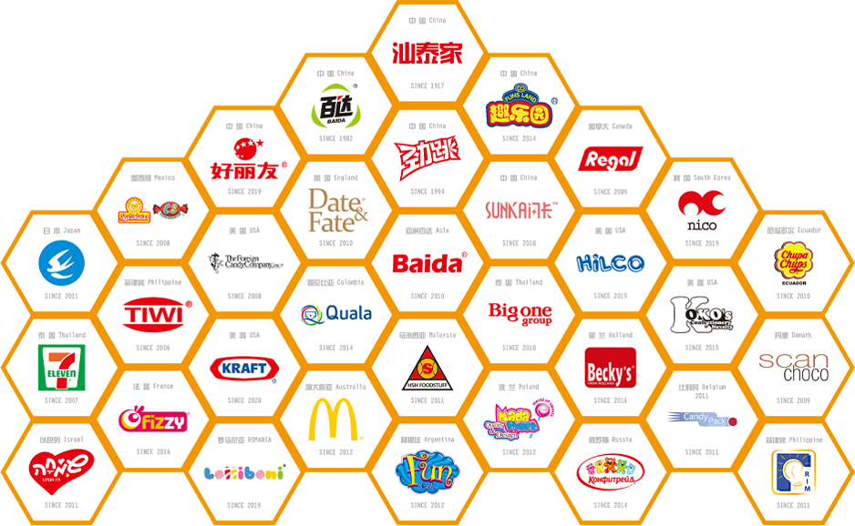 汕泰拥有专业的研发团队、精益的产销管理团队及成熟的全球定制服务。经过近20 年的积累沉淀, 熟知国内、美国、日本、欧盟等地区产品标准, 自有成熟完善的业务跟单系统、稳定可靠的出口报关货代资源, 可根据客户需求提供配套完善的劲跳糖全球定制服务。